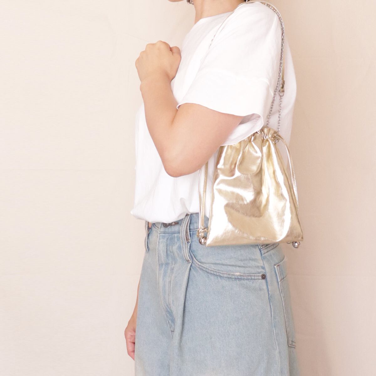 【BASE限定】メタリックレザーのミニ巾着ショルダー|全3色