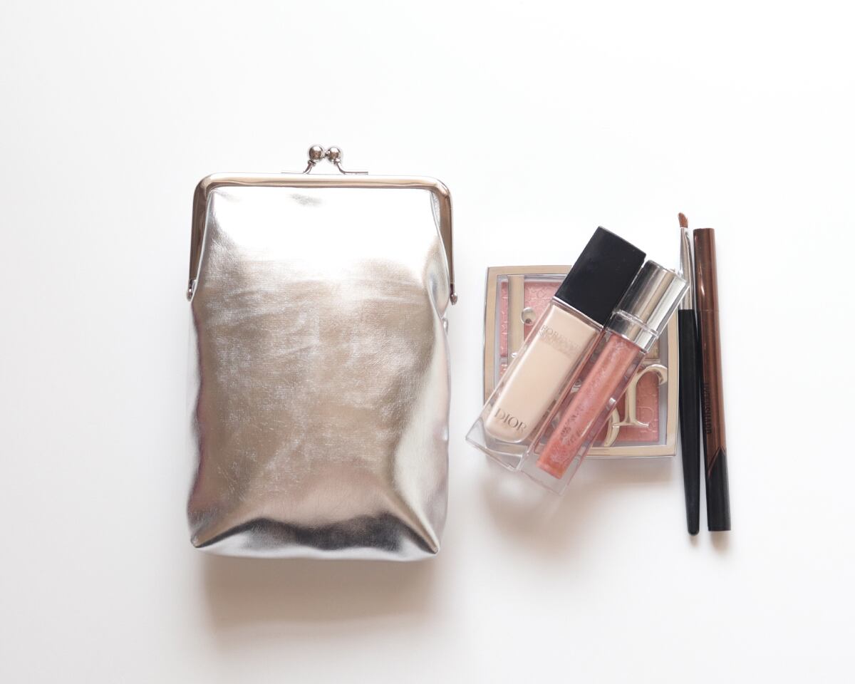 洗練されたクールさと軽やかさをまとったシルバーのがま口ポーチ。どんな色ともなじみやすく、季節を問わず活躍します。きらりと光る存在感が、バッグの中の小物にもシャープな印象をプラス。内布はショッキングピンクで、開けた瞬間に気分が上がります。