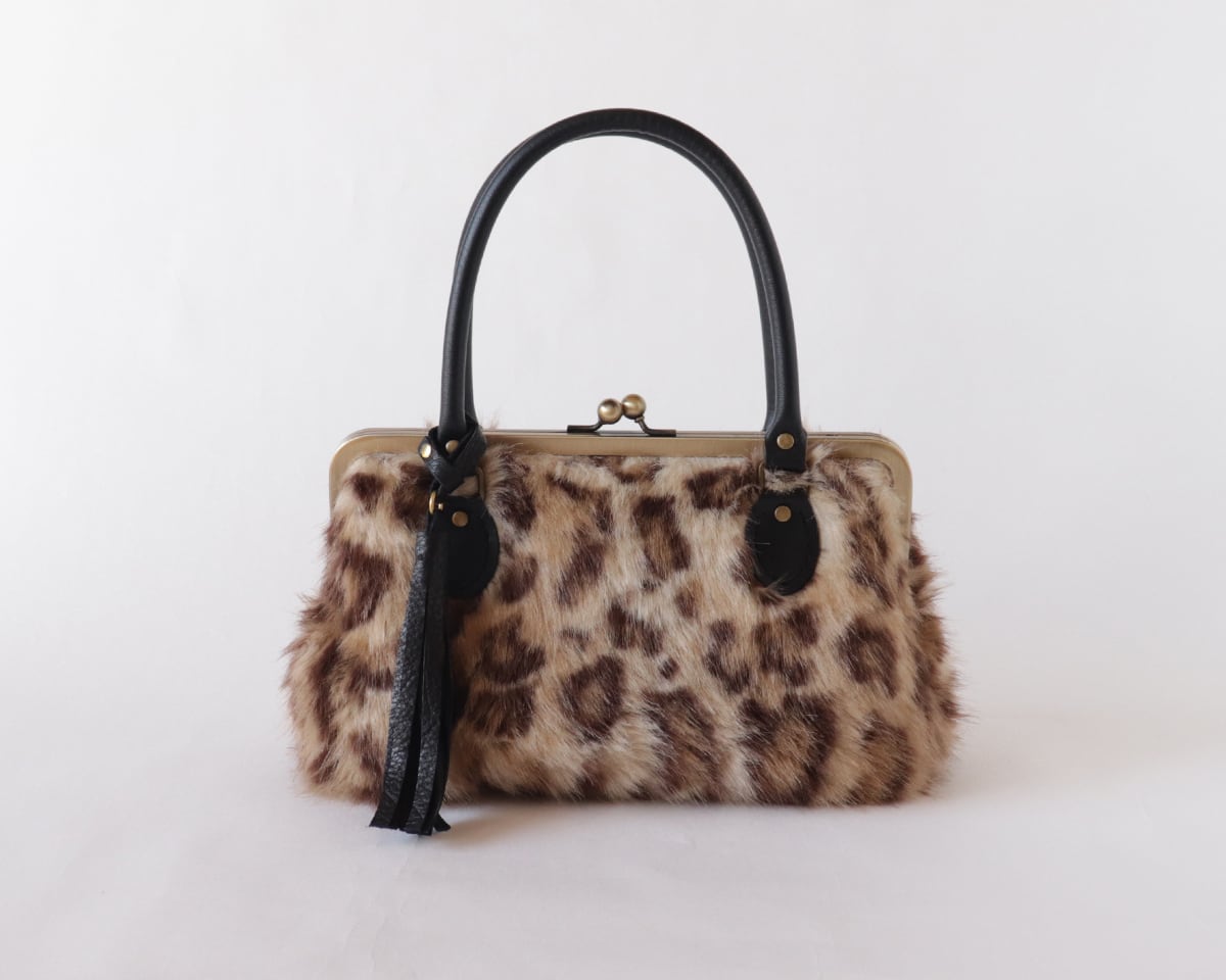 ★冬限定★上質な肌触り もこもこエコファー がま口バッグ レオパード柄