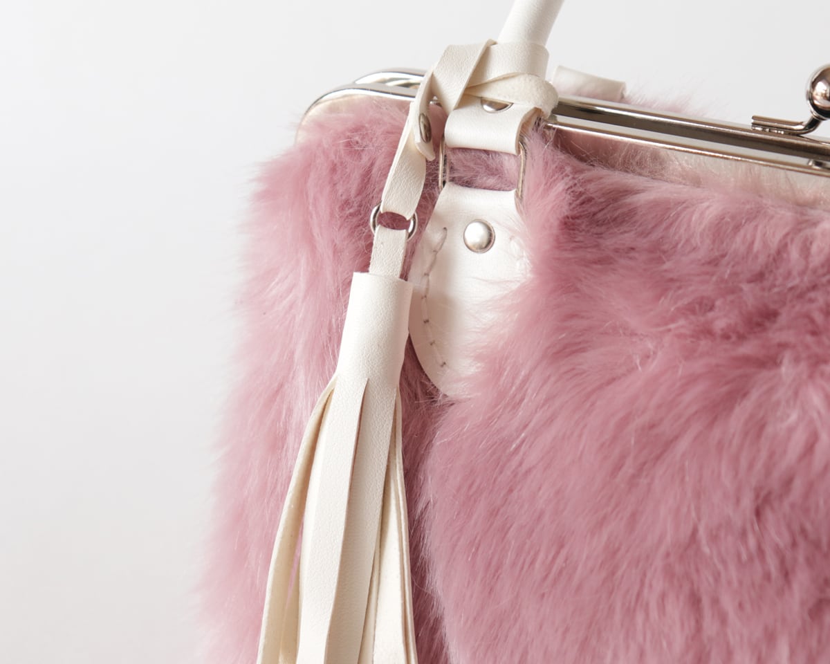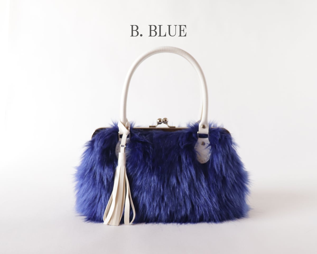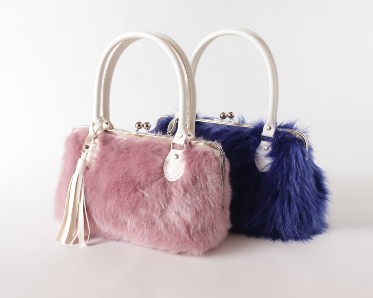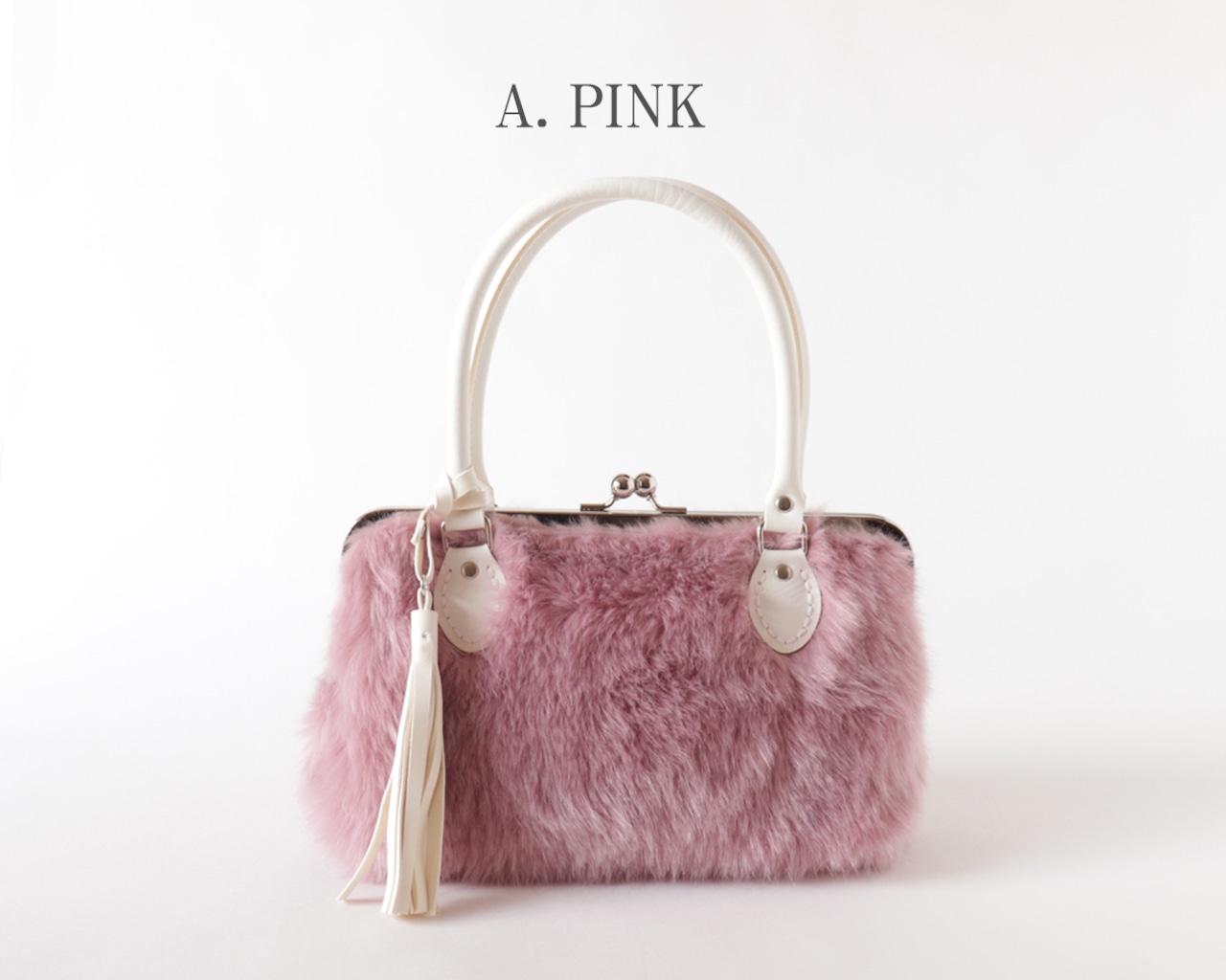 ★冬限定★上質な肌触り もこもこエコファー がま口バッグ PINK/BLUE