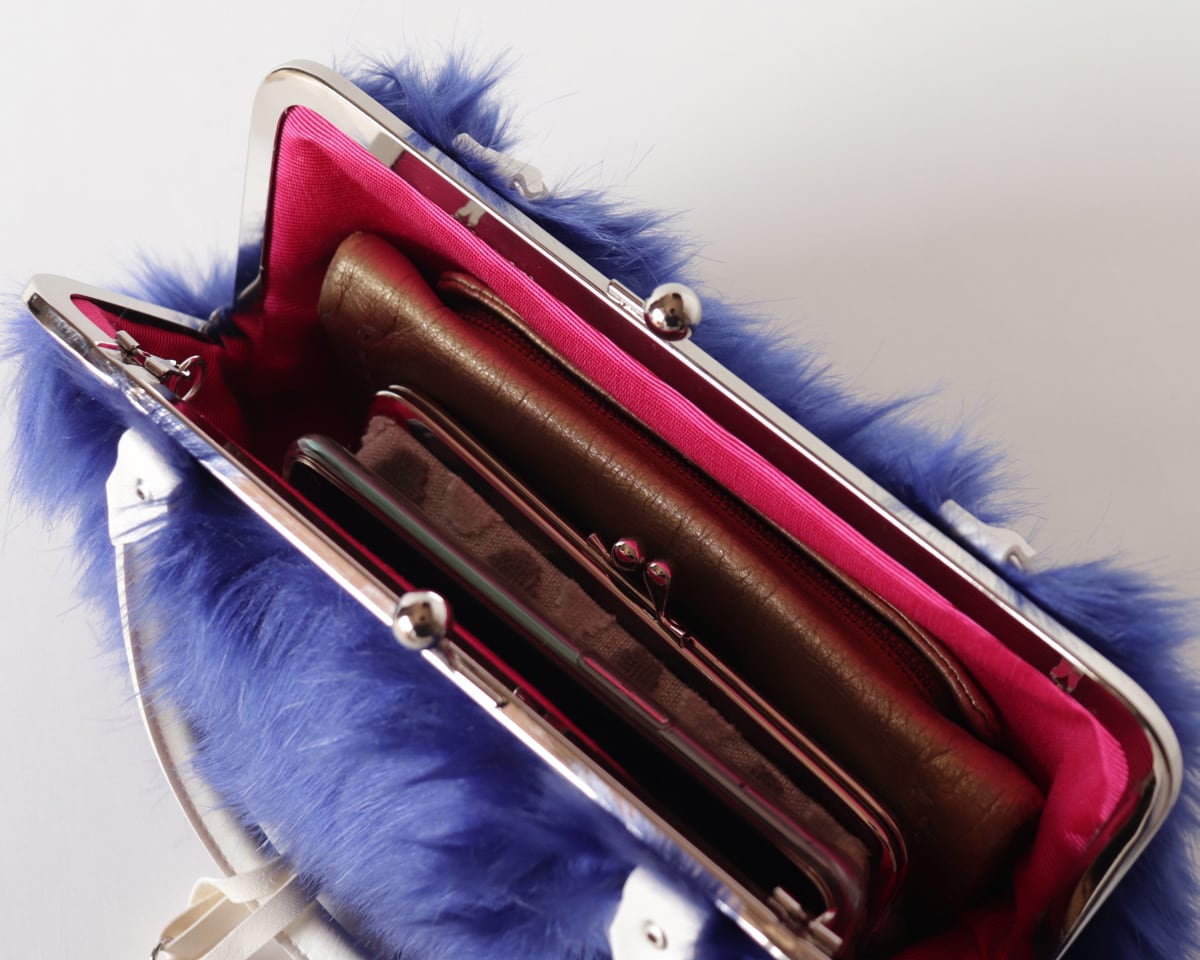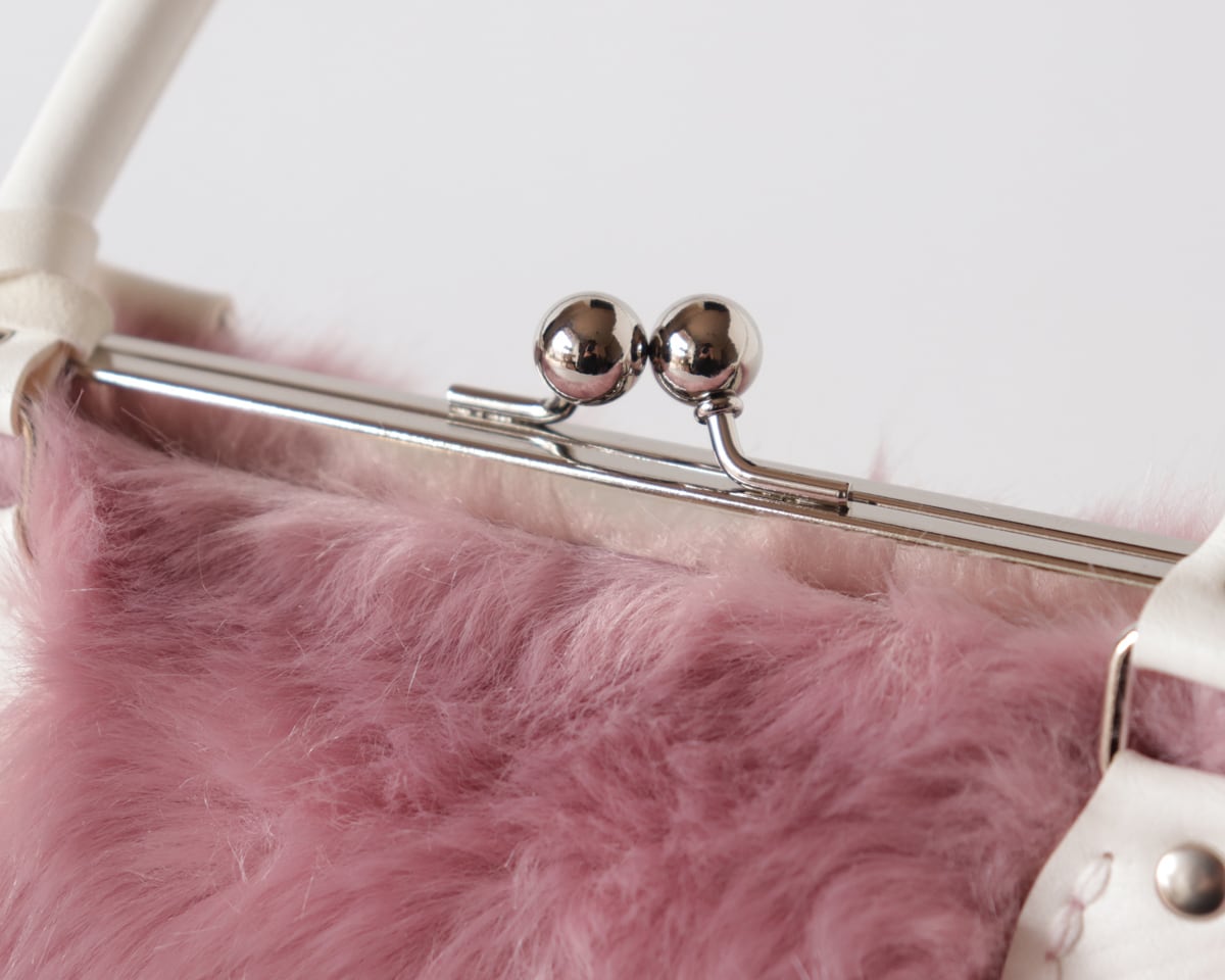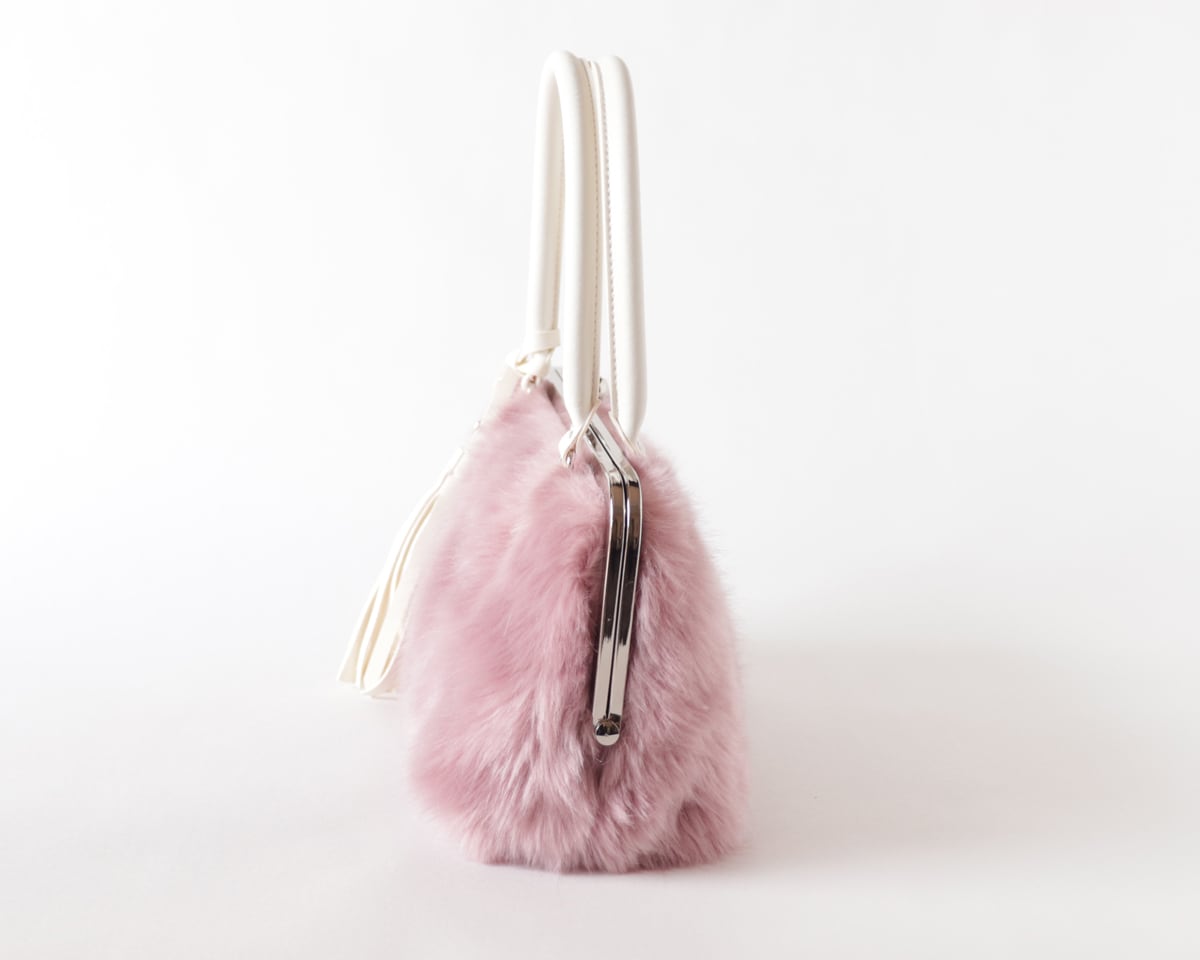 ★冬限定★上質な肌触り もこもこエコファー がま口バッグ PINK/BLUE