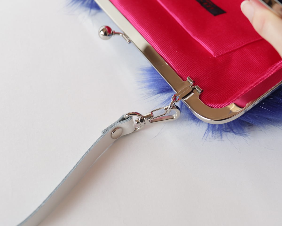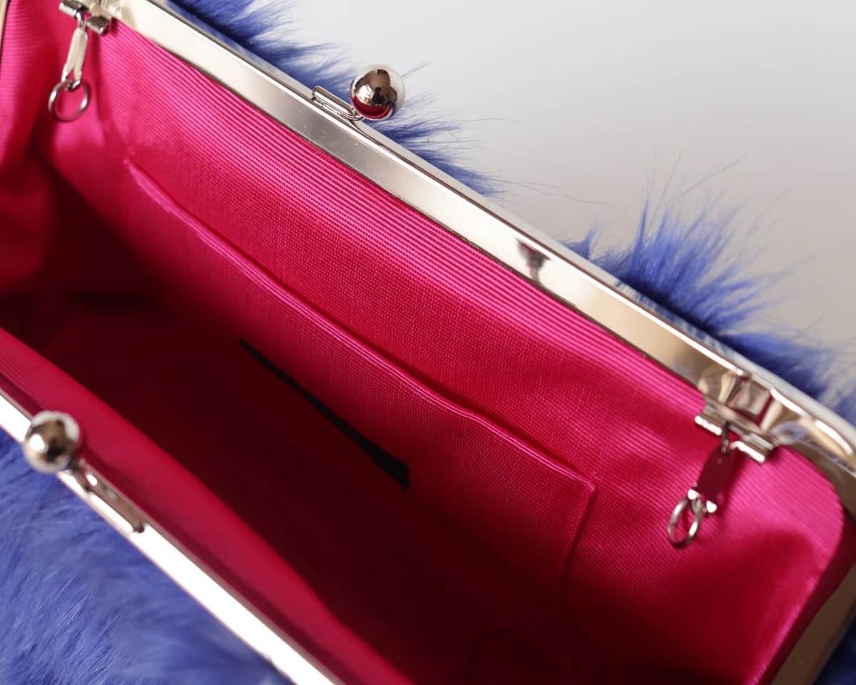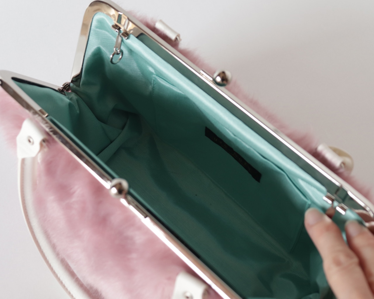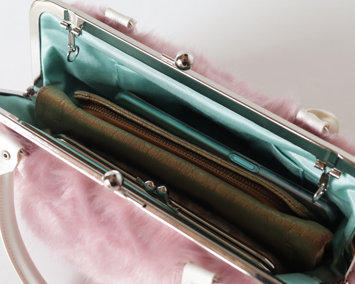 ★冬限定★上質な肌触り もこもこエコファー がま口バッグ PINK/BLUE