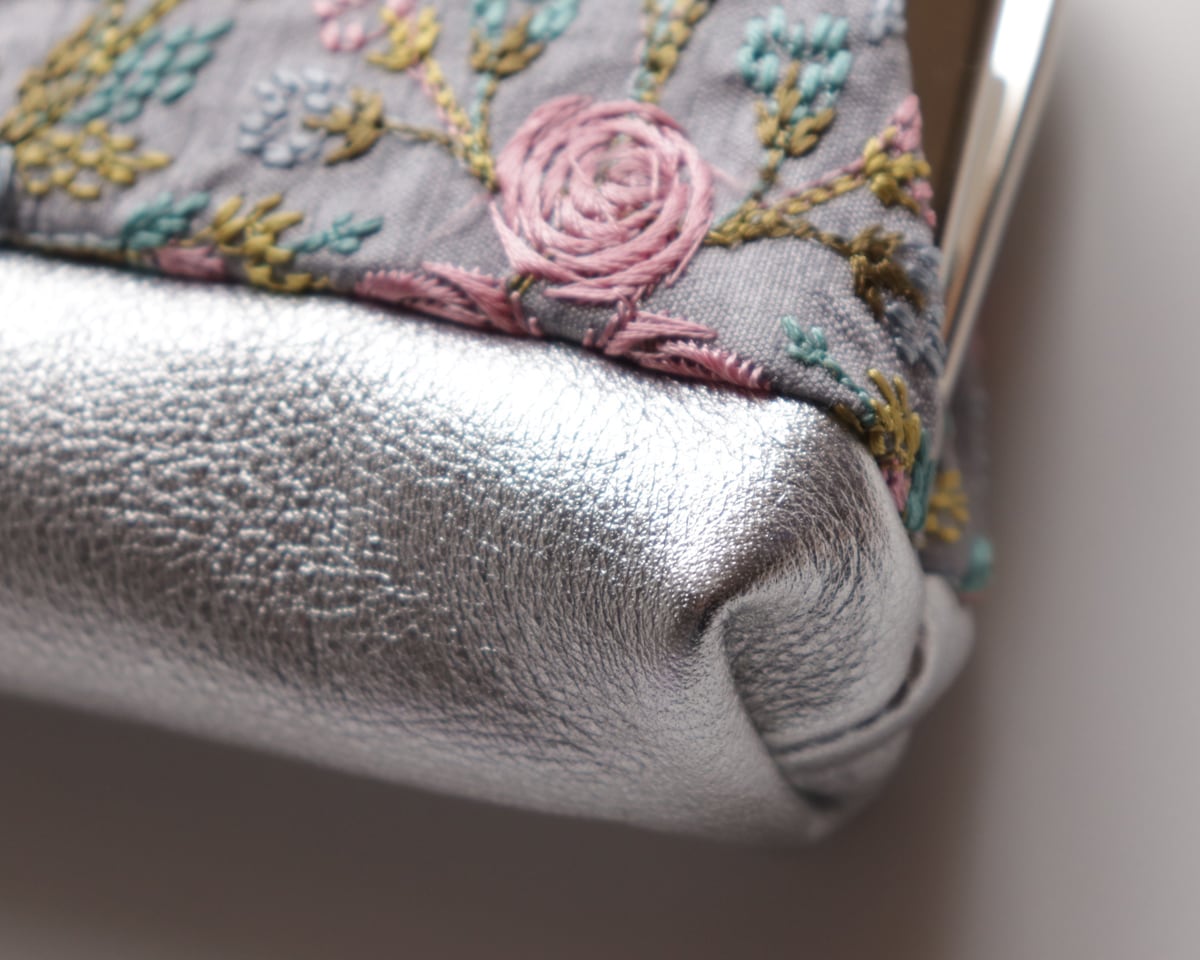 繊細なインド刺繍が美しい、がま口タイプのめがねケースです。