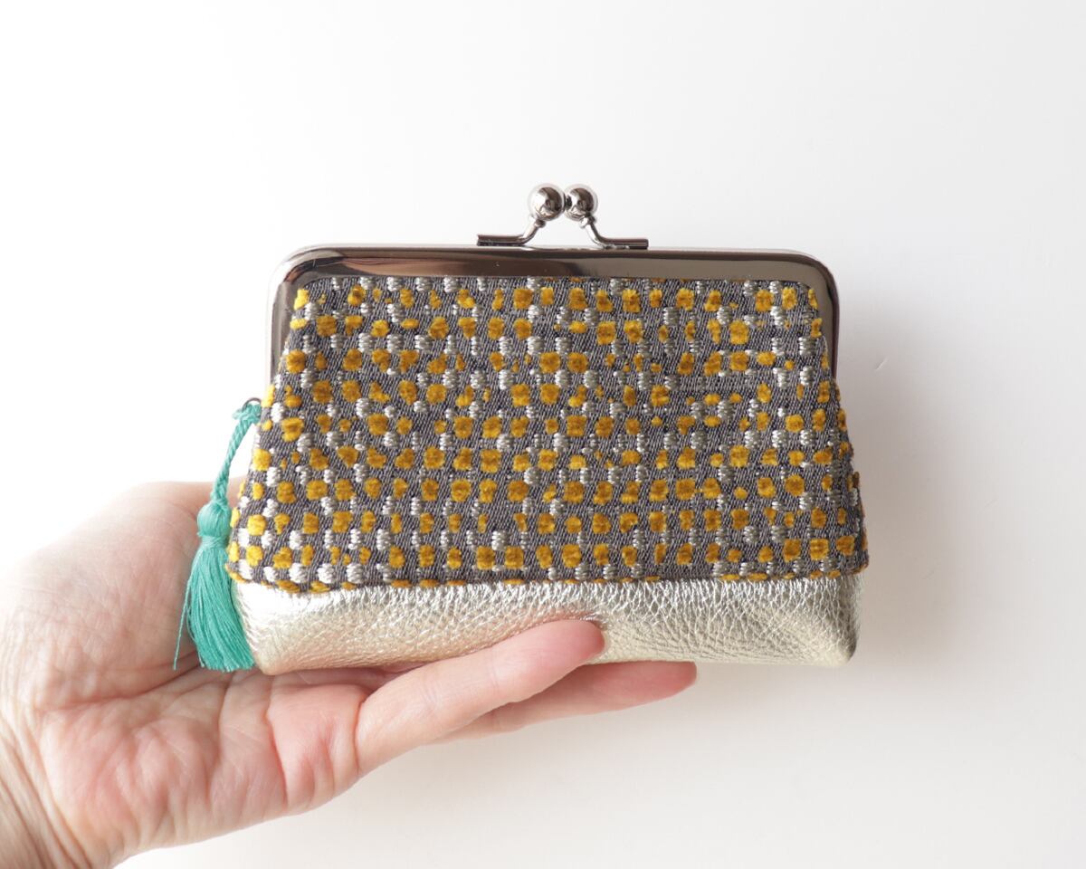親子がま口財布・小物入れ イギリス生地と牛革レザー ミモザカラー