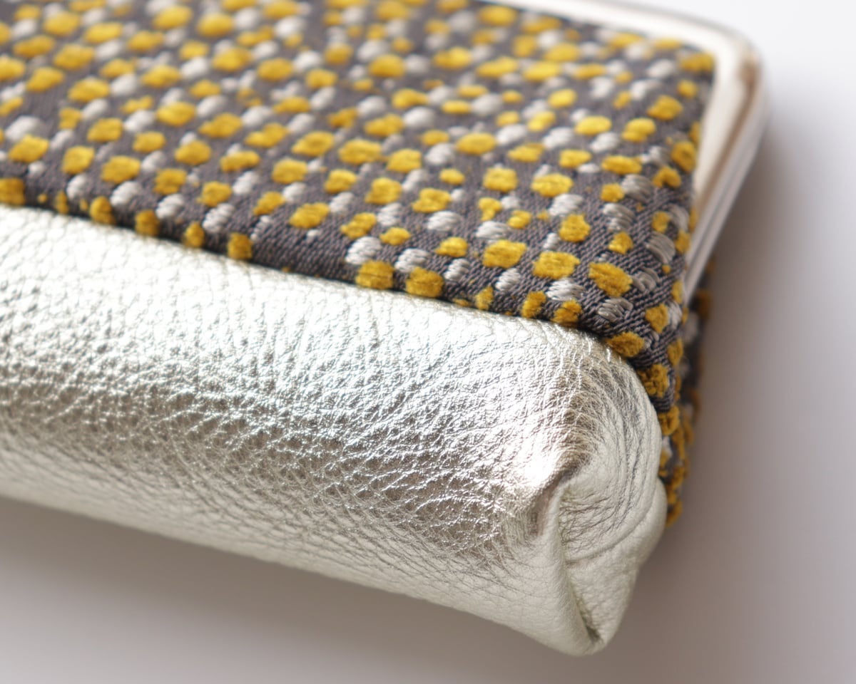 ほんのり光をまとったプラチナ色の国産箔張りレザーを合わせました。
