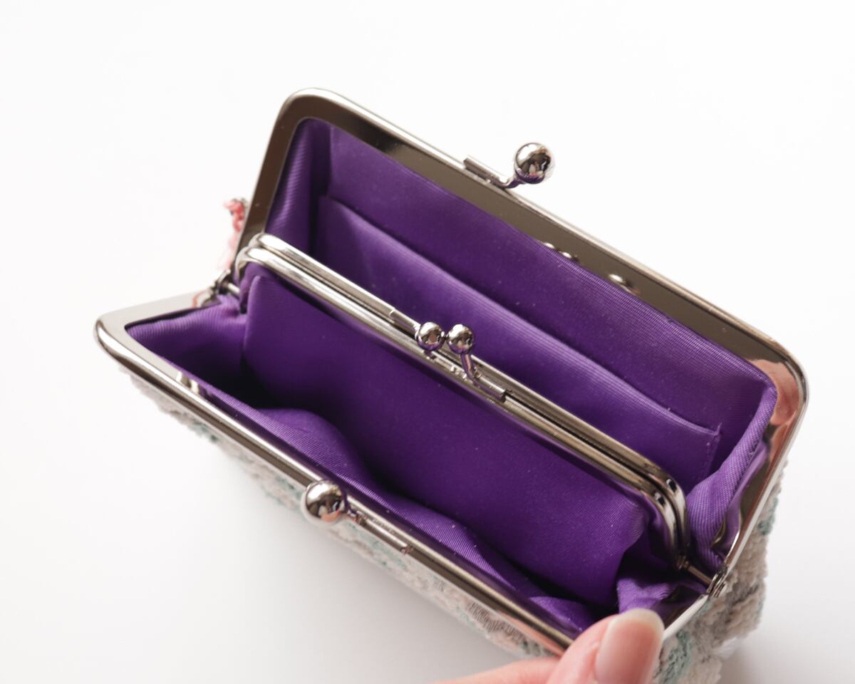 手のひらに収まるコンパクトさながら、中にはもうひとつがま口がついた「親子構造」。小銭・お札・カードをしっかり分けて収納できる実用性も魅力です。普段使いはもちろん、旅行や年末年始のイベントシーズンにも重宝します。