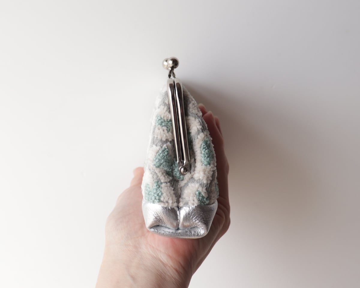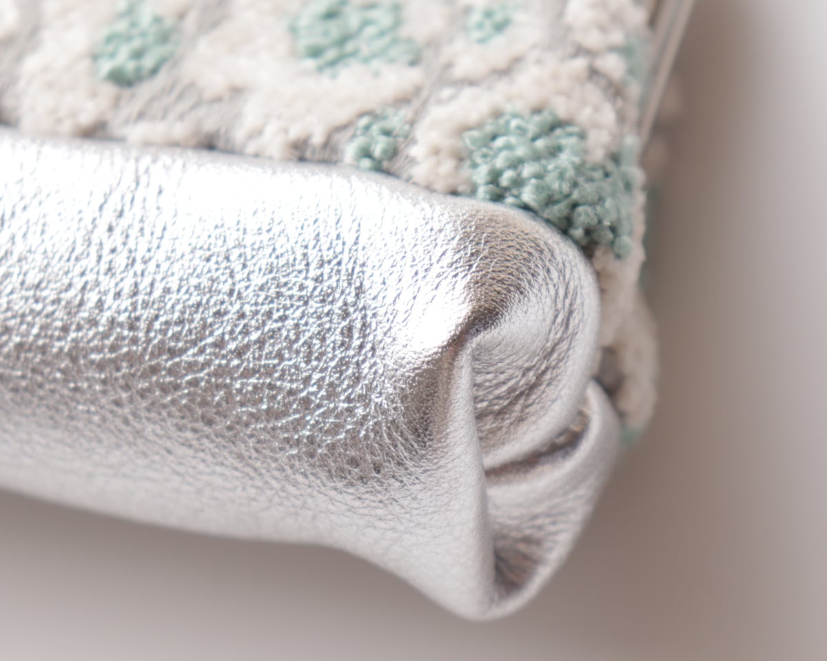 ほんのり光をまとったシルバーの国産箔張りレザーを合わせました。
