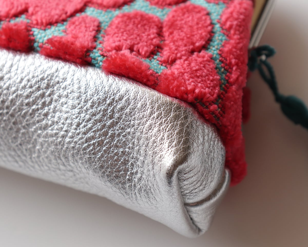 レオパード柄と牛革レザーの親子がま口財布・小物入れ Hot pink Velvet & Turquoise