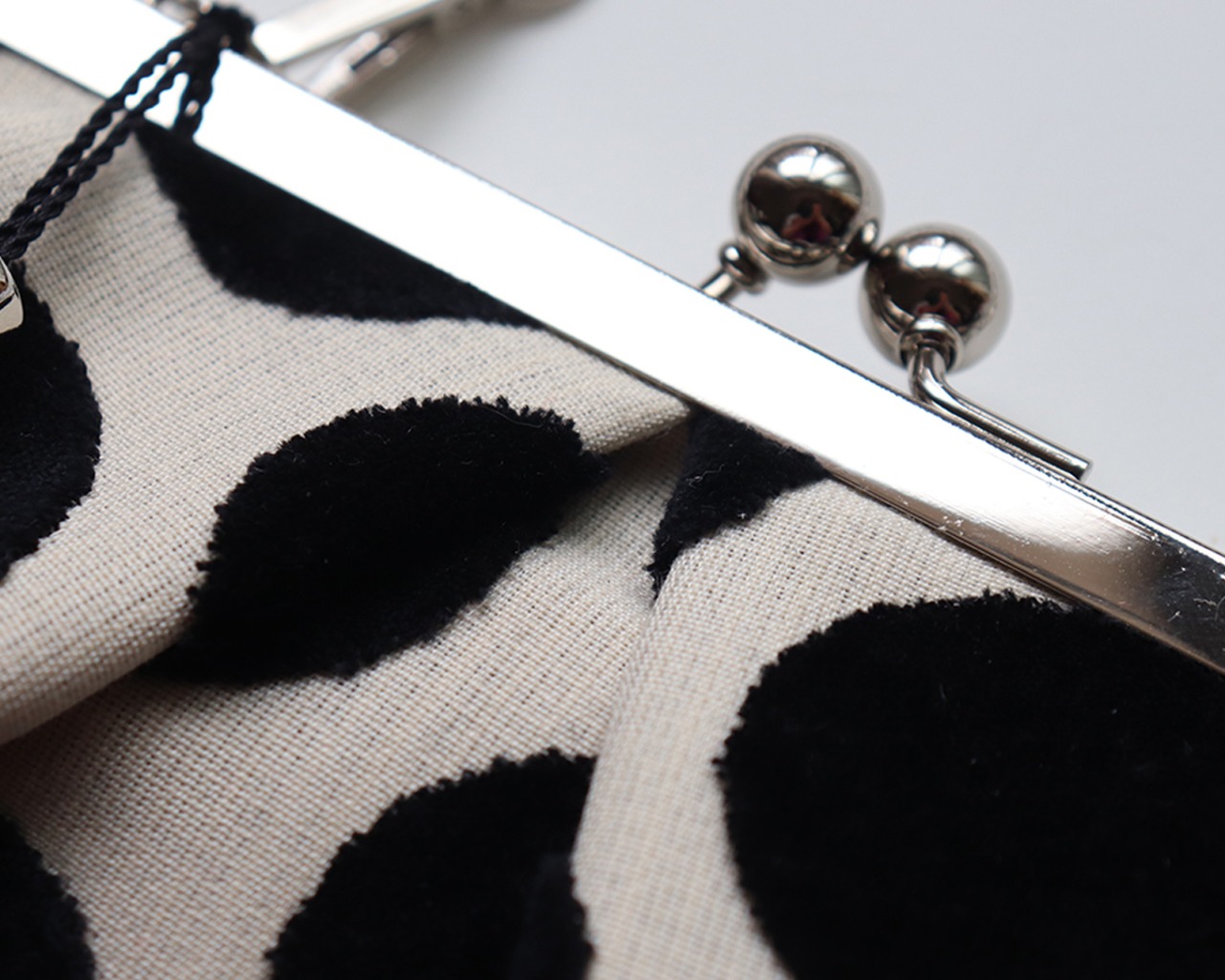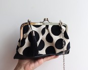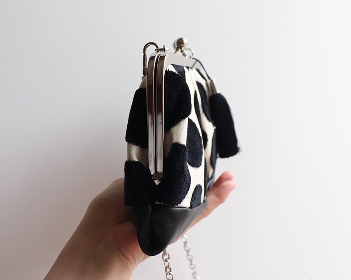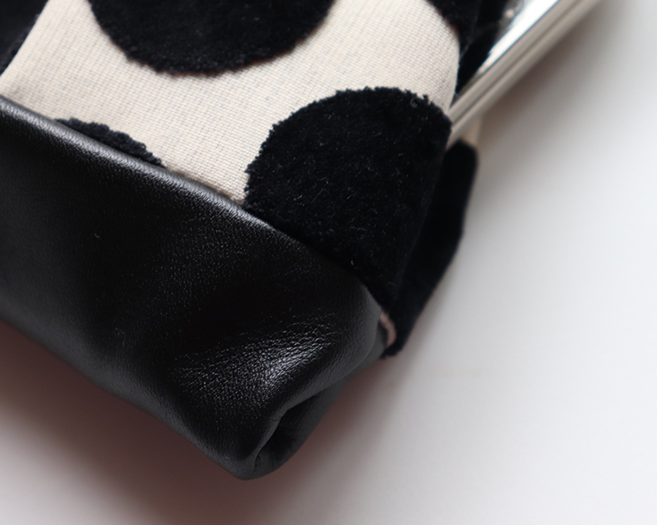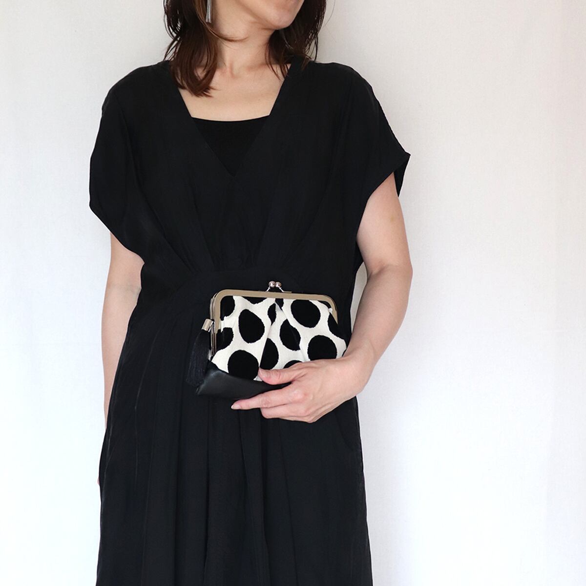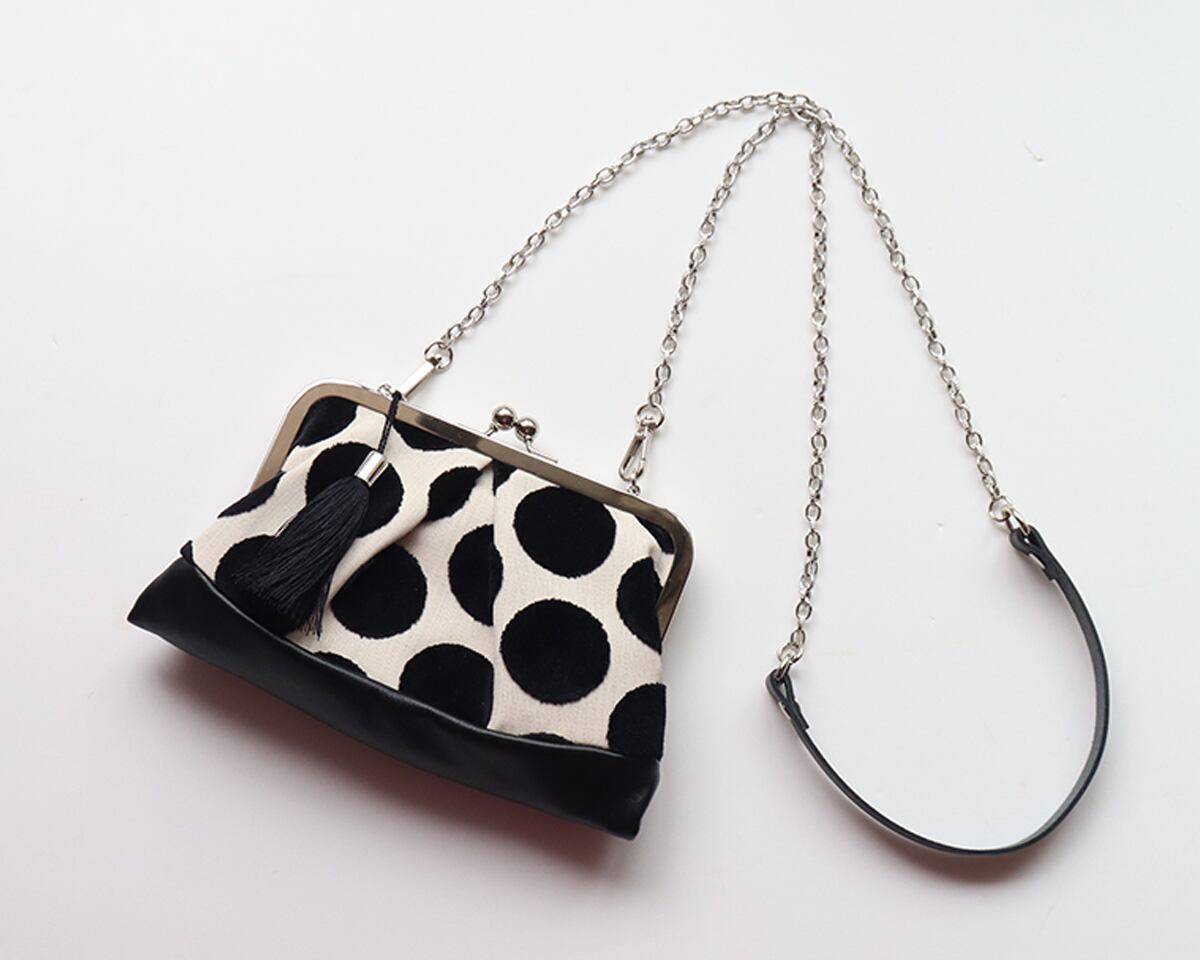 Eさま専用 2way お財布がま口ショルダーバッグ・クラッチバッグ ドット柄と牛革レザー BLACK