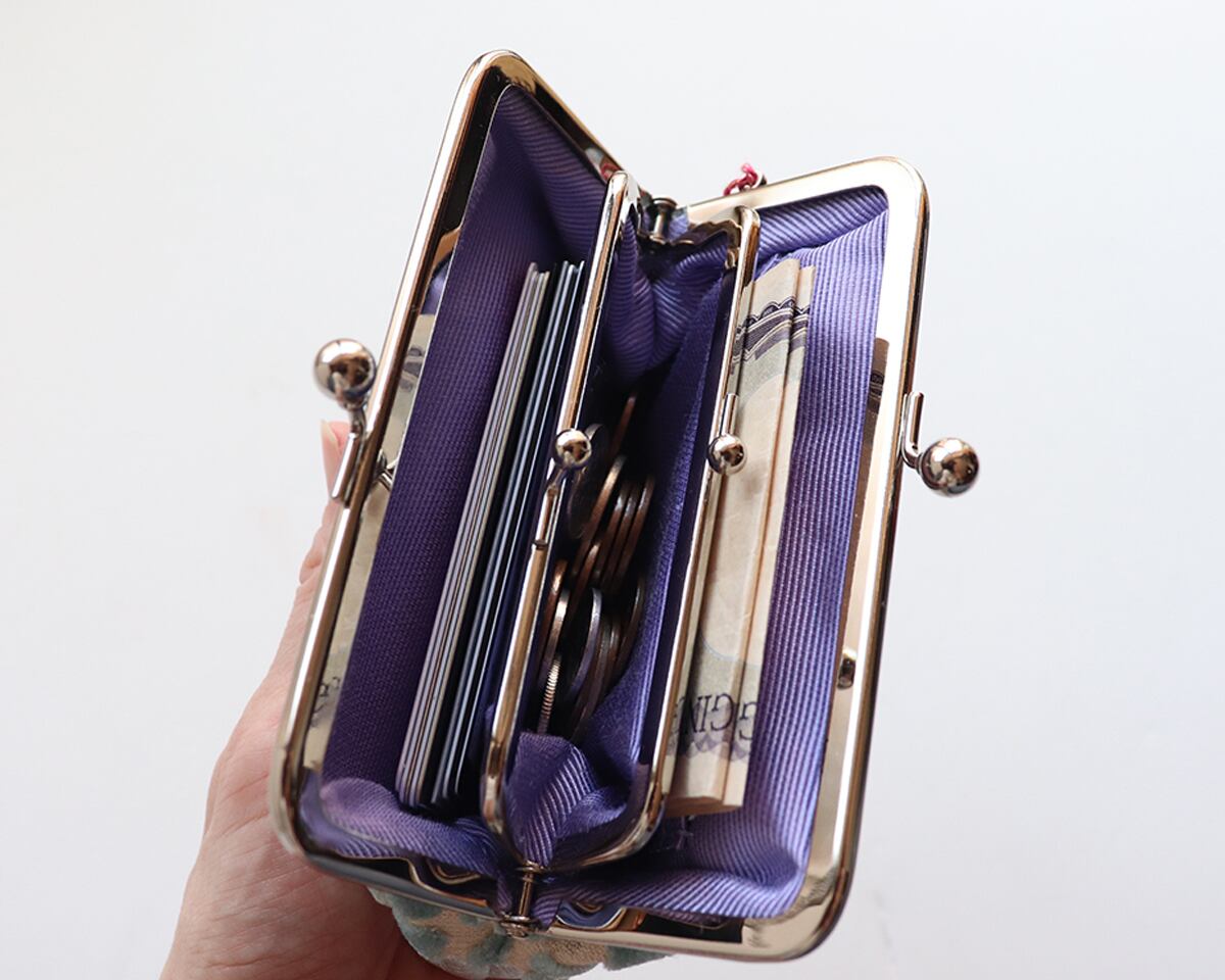 ・中もがま口になっている親子がま口で中のがま口が仕切りになっているのでお札とカードに分けれます。中のがま口には小銭が入ります。小さいけれどカードもたっぷり入ると評判です。