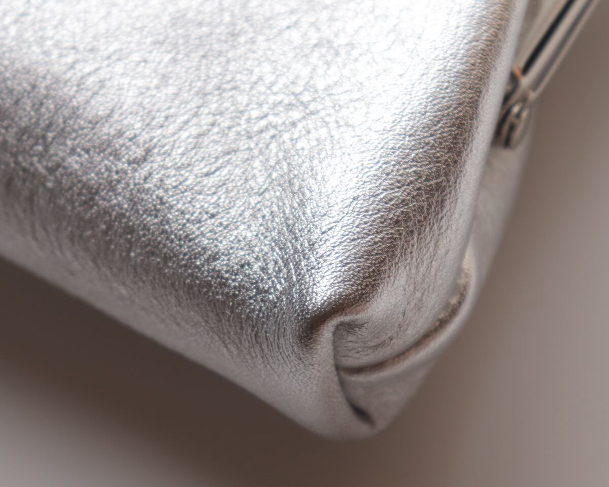 がま口のお財布ミニショルダーバッグ 国産牛革箔張りレザー SILVER